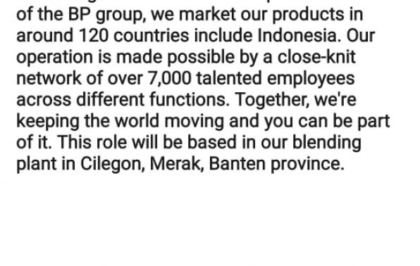 This role will be based in our blending plant in Cilegon, Merak, Banten province.