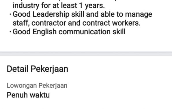 - Good Leadership skill and able to manage staff, contractor and contract workers.