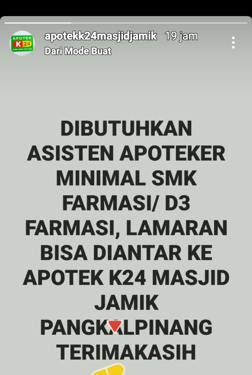 info Kerja Asisten apoteker @apotekK24-Pangkalpinang