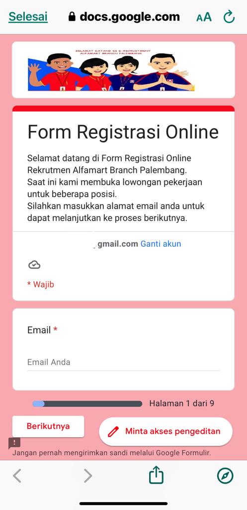 pendaftaran secara online di Link: https://bit.ly/alfamartplg