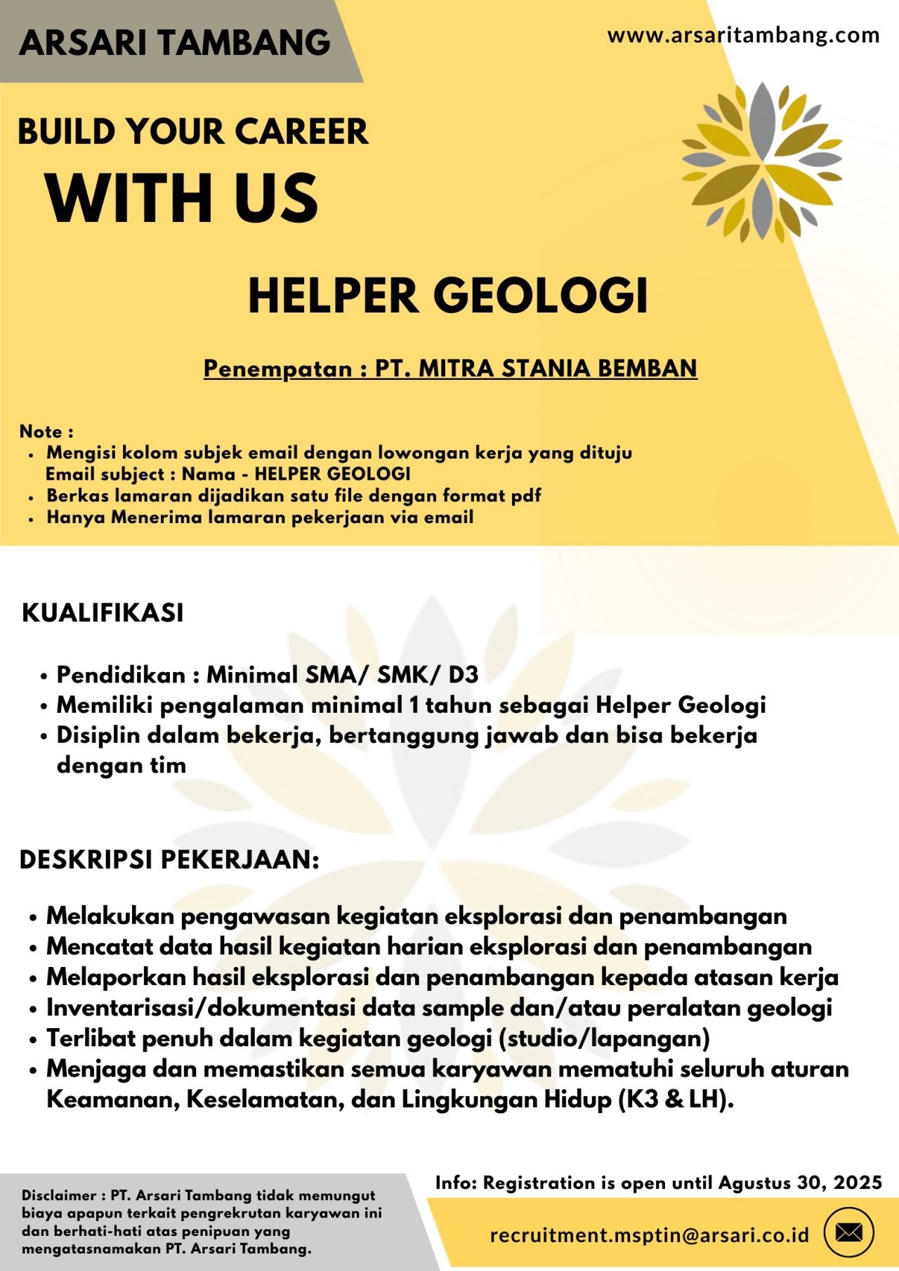 1. Helper Geologi-PT Mitra Stania Bemban.