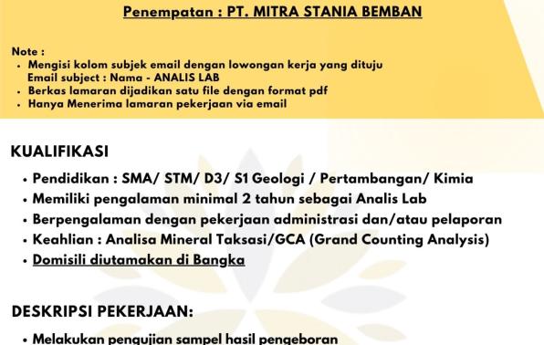 3. Analis Lab-PT Mitra Stania Bemban.