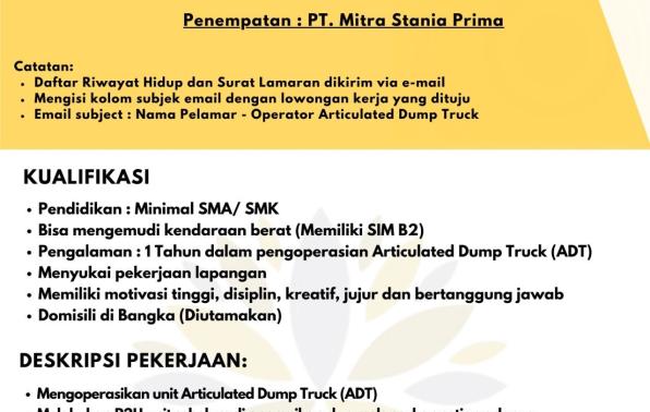 4. Operator ADT(Articulated Dump Truck)-PT Mitra Stania Bemban.