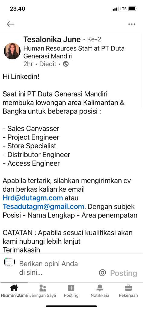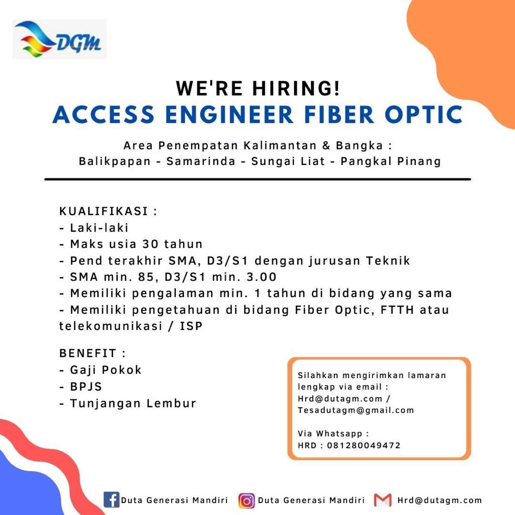 Access Engineer Fiber Optic & Sales Canvasser @Sungailiat & Pangkalpinang