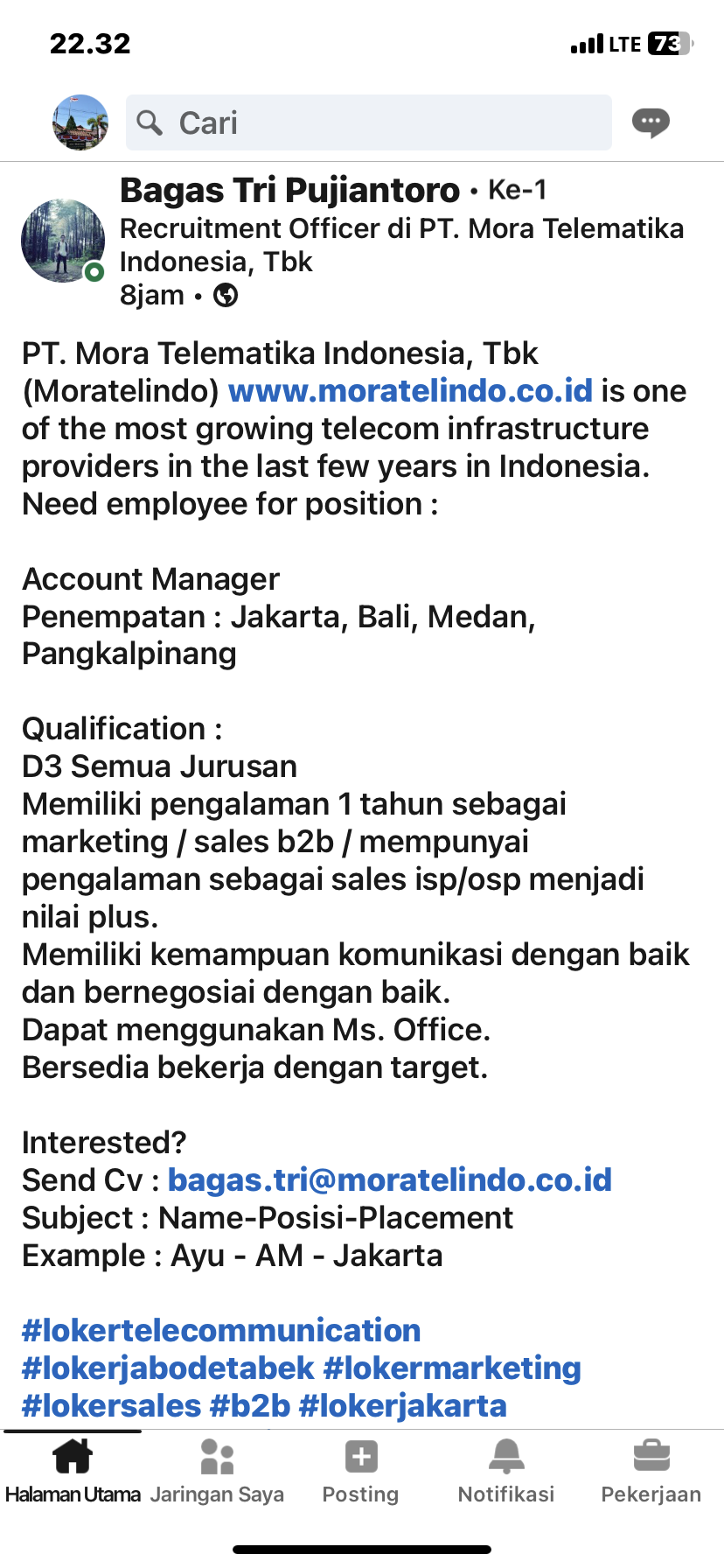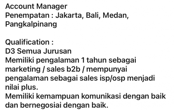 PT Mora Telematika Indonesia membuka kesempatan kerja untuk posisi Account Manager penempatan Pangkalpinang