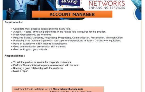 info Loker ACCOUNT MANAGER-PT Mora Telematika Indonesia