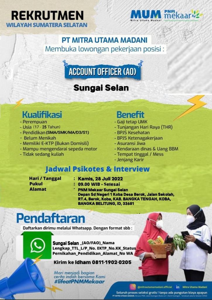 Loker Account Oficer-PT Mitra Utama Madani