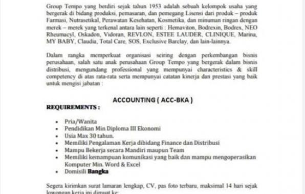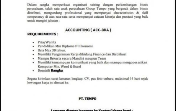 info Loker ACCOUNTING-the Tempo Group @Bangka