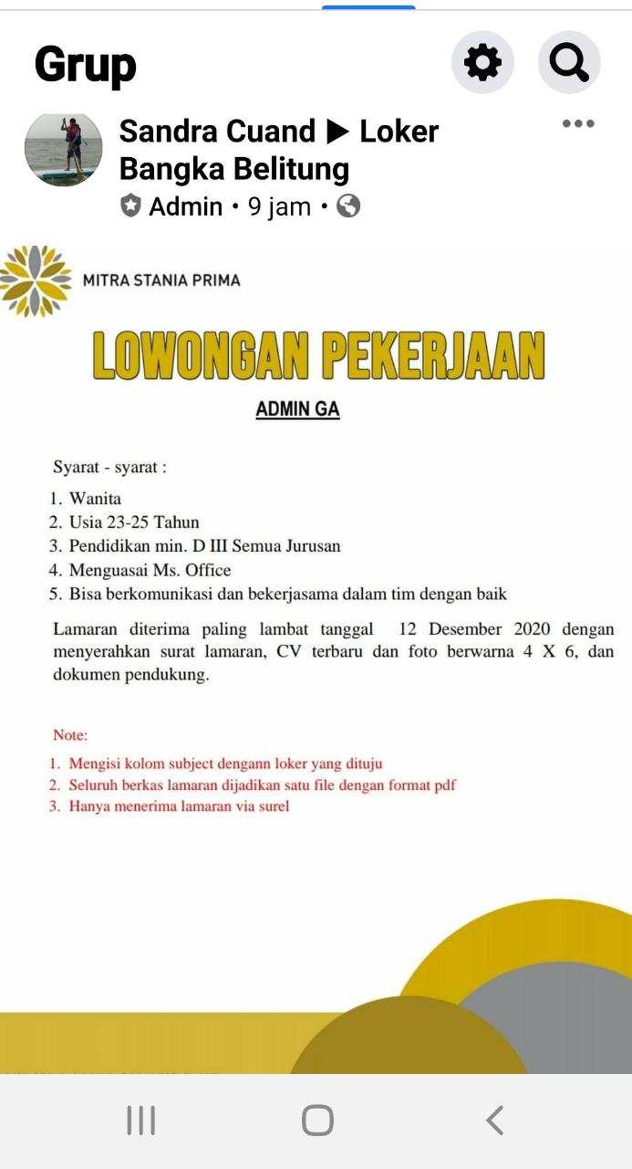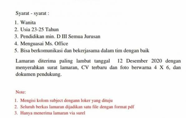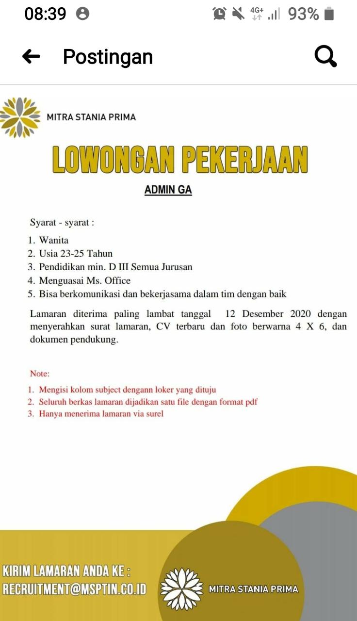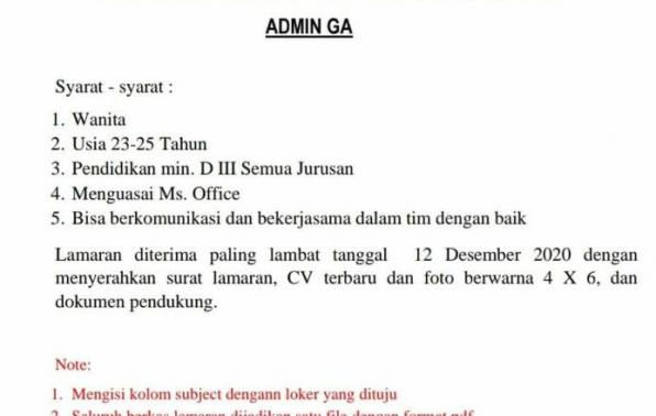 Membuka kesempatan untuk Wanita pada posisi ADMIN GA-Tambang @Riau silip