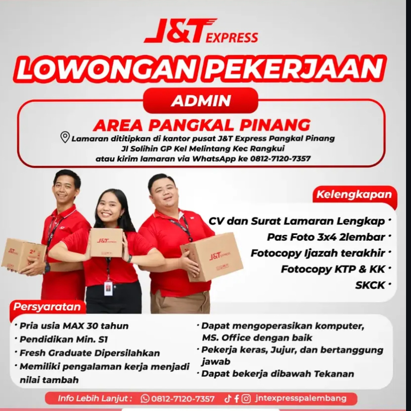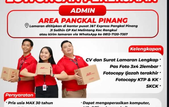 J&T Express Pangkalpinang membuka kesempatan kerja untuk posisi ADMIN.