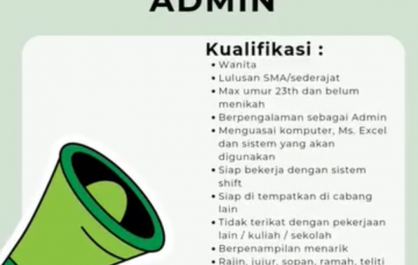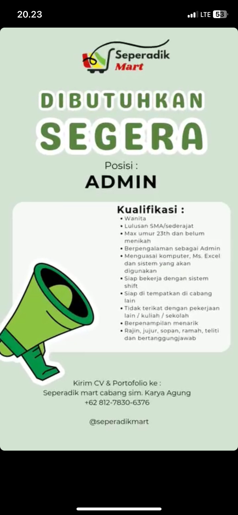 Retail SeperadikMart Pangkalpinang membuka kesempatan kerja untuk posisi ADMIN