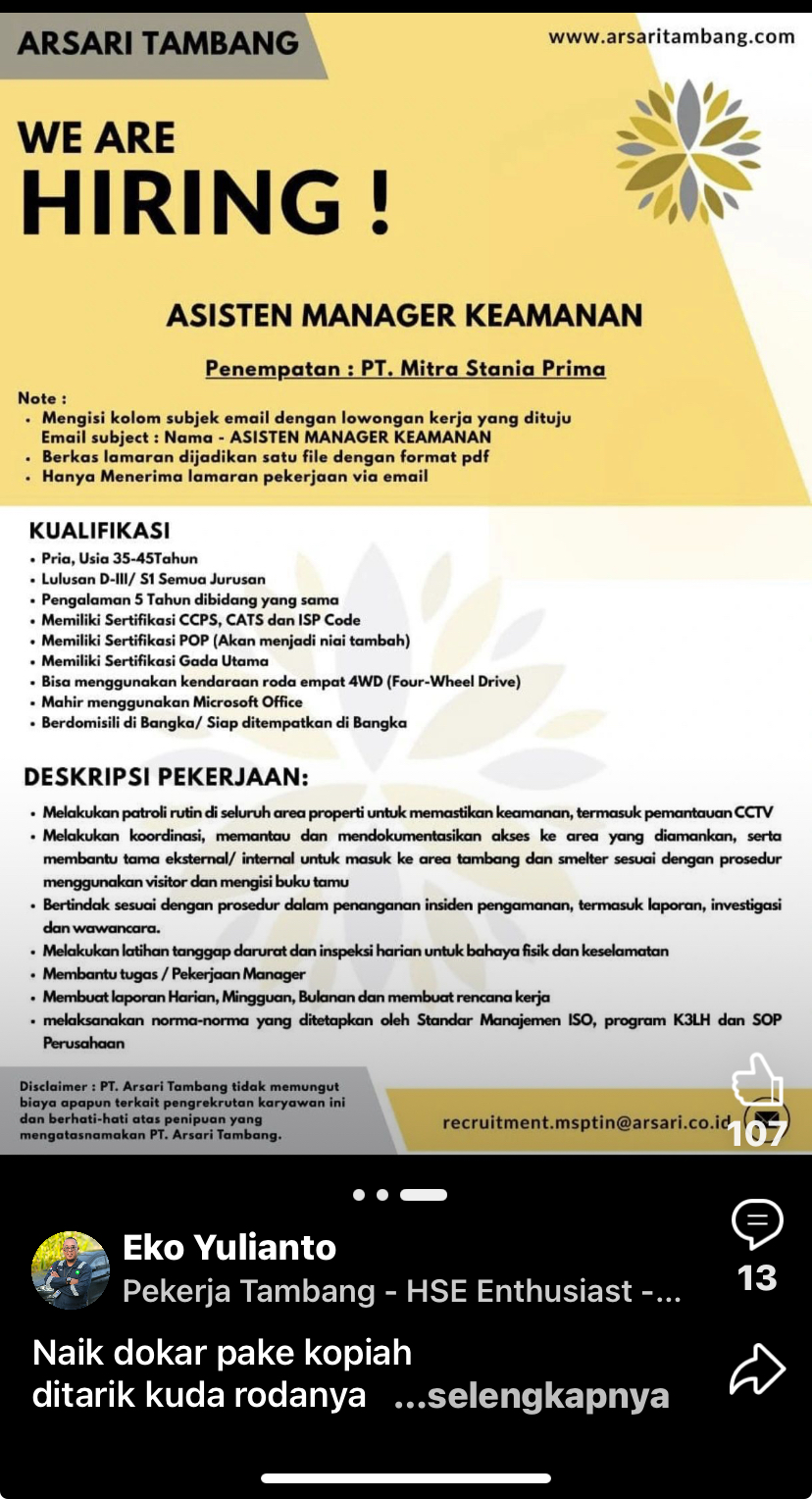 - Asisten Manager Keamanan