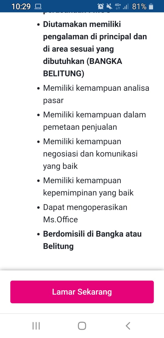 pendaftaran secara online di linkĀ https://www.jobstreet.co.id/id/job/area-sales-supervisor-bangka-belitung...