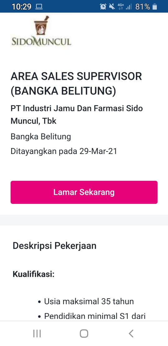 Area Sales Supervisor @PT.Industri Jamu & Farmasi Sido-Bangka Belitung