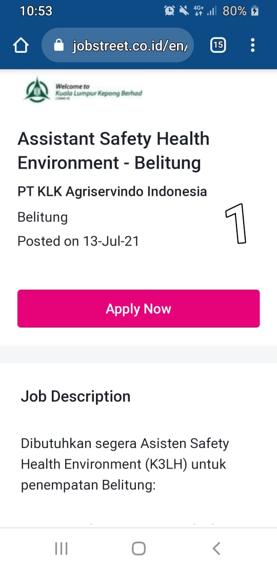 info Loker Asistant Safety Health Environment @PT.KLK Agriservindo Indonesia-Belitung