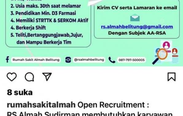 info Loker Asisten Apoteker-Rumah sakit Almah Sudirman @Tanjungpandan-Belitung