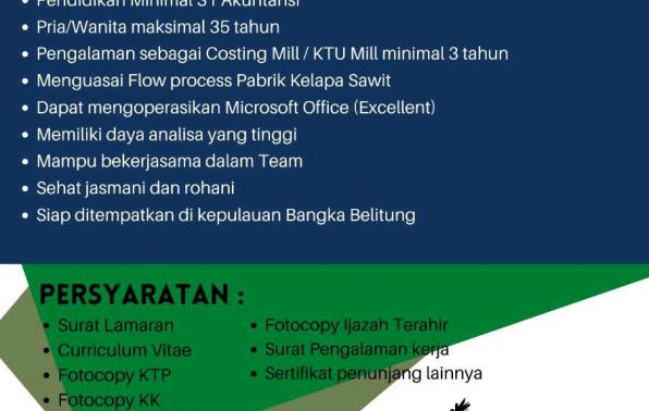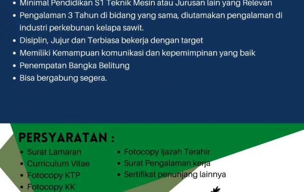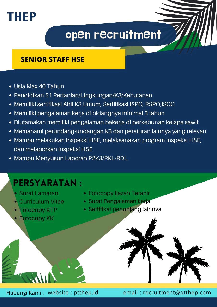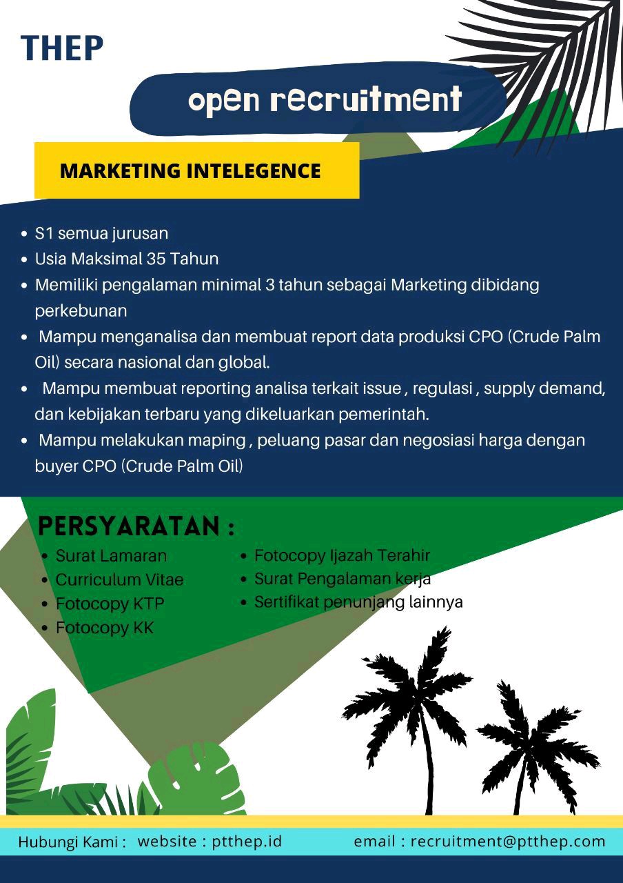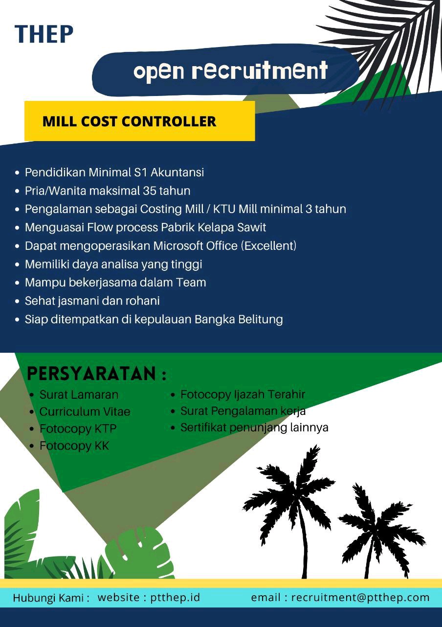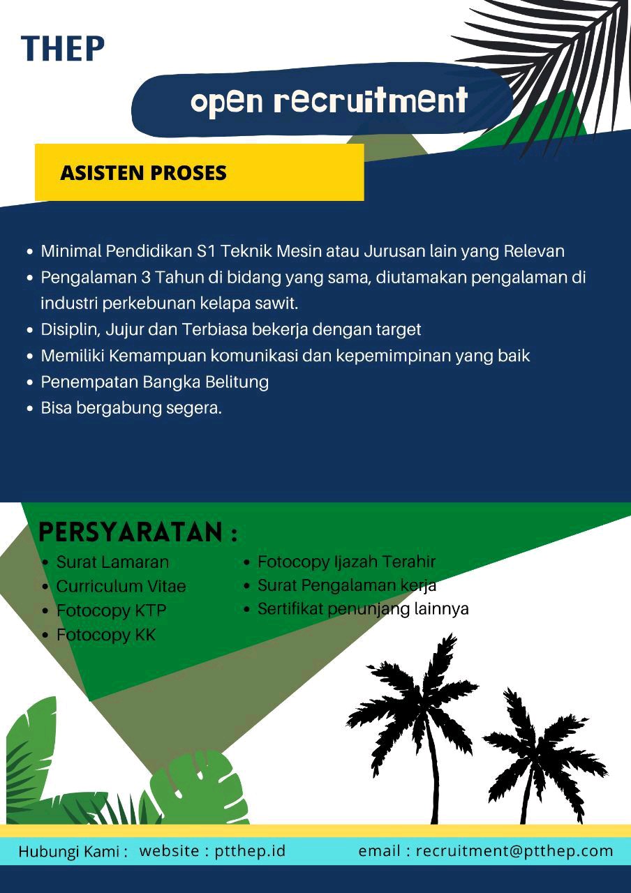 info Loker Asisten Proses,Senior Staf HSE,Mill Cost Controller,Marketing Intelligence,Mekanik/Traksi-PT THEP-Bangka Belitung
