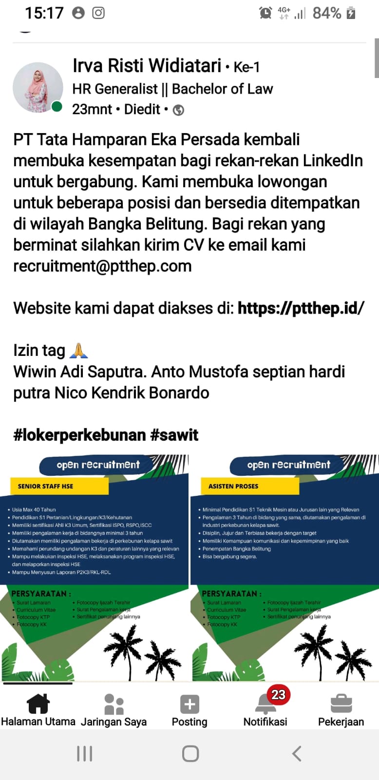 PT .Tata Hamparan Eka Persada/THEP membuka :