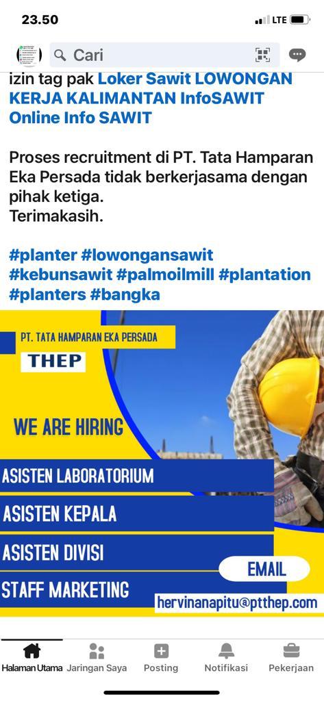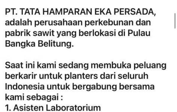 Asisten:Laboratorium,Kepala,Lapangan: & Staff Marketing @ PT.THEP-Bangka Belitung