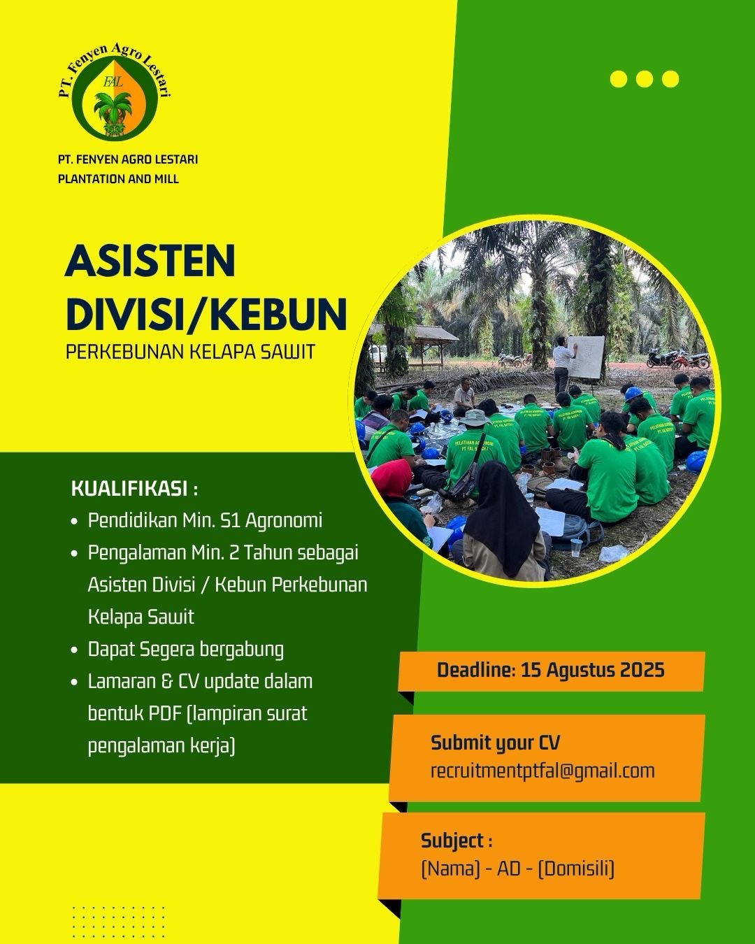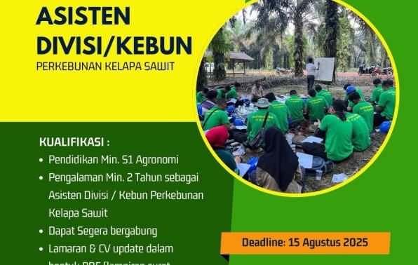 - Asisten Divisi/Kebun, Batas 15 Agustus 2025.