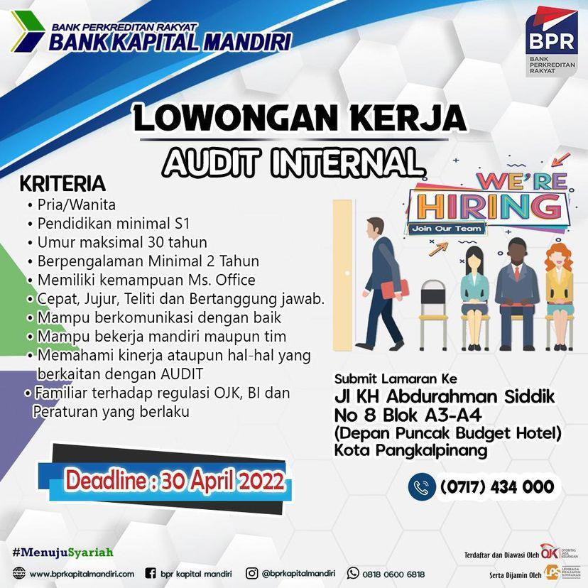 Loker Audit Internal-BPR/Bank Kapital Mandiri-Pangkalpinang
