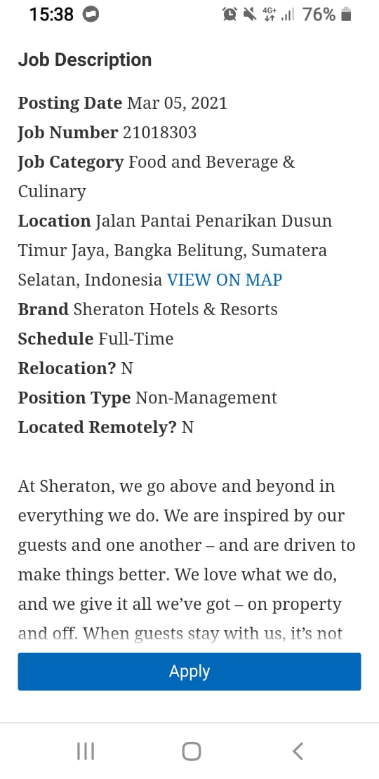 pendaftaran dilaksanakan secara langsung di link : https://jobs.marriott.com/jobs/21018303?lang=en-us