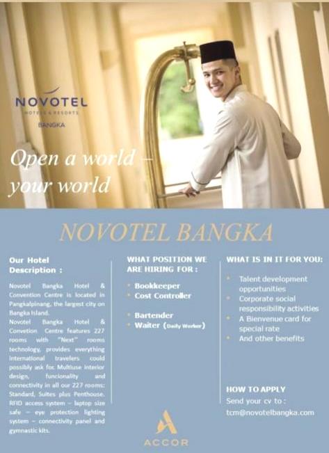 Bookkeeper,Cost Control,bartender,WAiter/daily worker @Novotel Bangka
