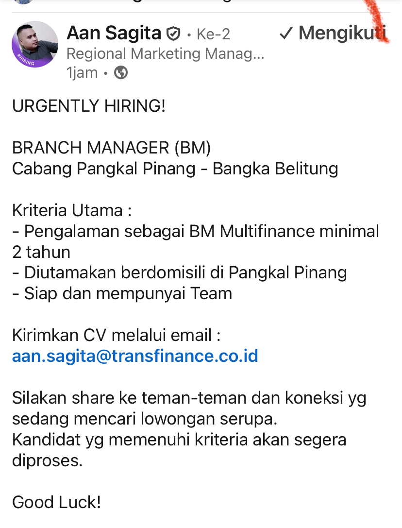 Linkedln: Aan Sagita