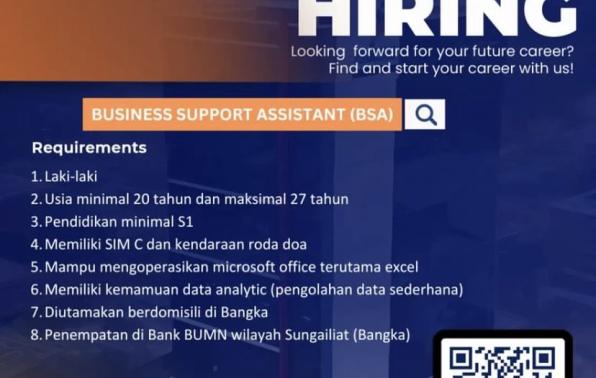 - Business Support Assistant/BSA (Lokasi Penempatan Sungailiat/Bangka)