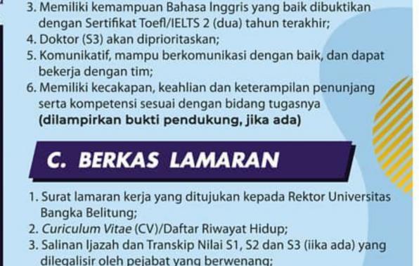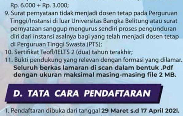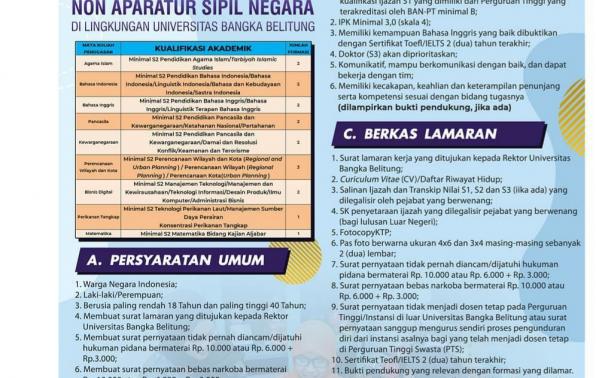 Calon Dosen Tetap non ASN Univ.Bangka Belitung(agama Islam,Bahasa Indonesia,bahasa inggris,Pancasila,kewarganegaraan,Perencanaan Wil & Kota,bisnis digital,perikanan tangkap,matematika.