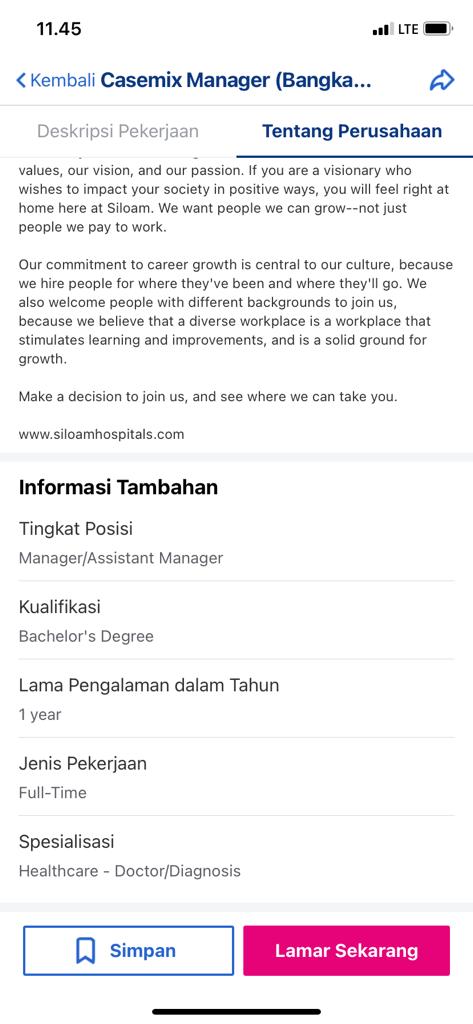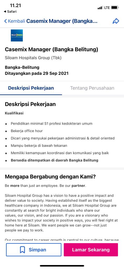 Casemix Manager @Siloam Hospital Group-Bangka Belitung