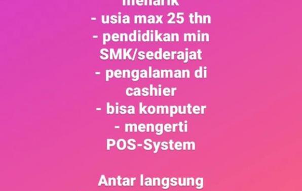 CASHIER @Ayutingting-Belitung.BerkasLamaran diantar Langsung.