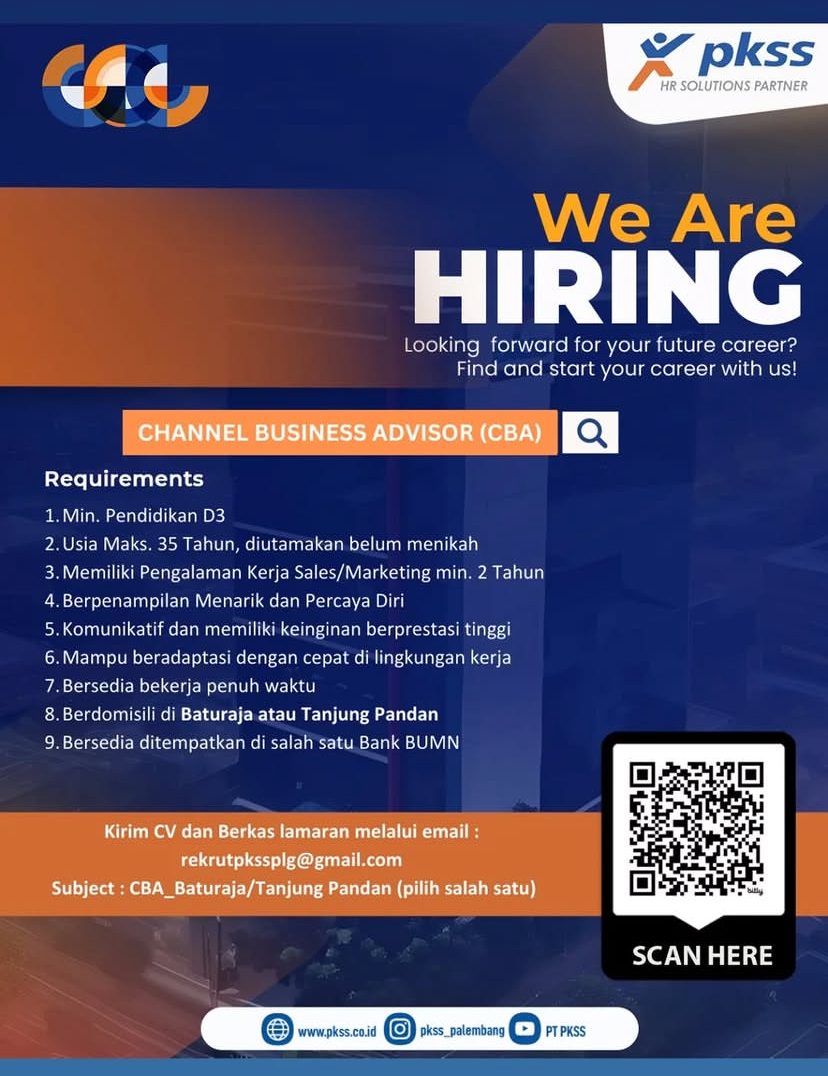 PT Prima Karya Sarana Sejahtera(PKSS) perusahaan perekrutan Tenaga kerja mencari tenaga kerja untuk posisi Channel Business Advisor(CBA).