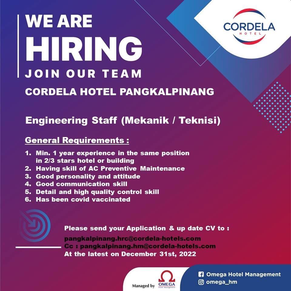 Chief Accounting dan Engineering Staff-Cordela Hotel-Pangkalpinang
