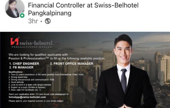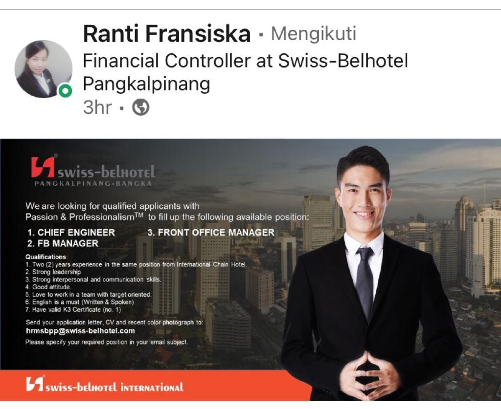 Chief Engineering, FB Manager & Font Office Manager @SwissBell Hotel-Pangkalpinang