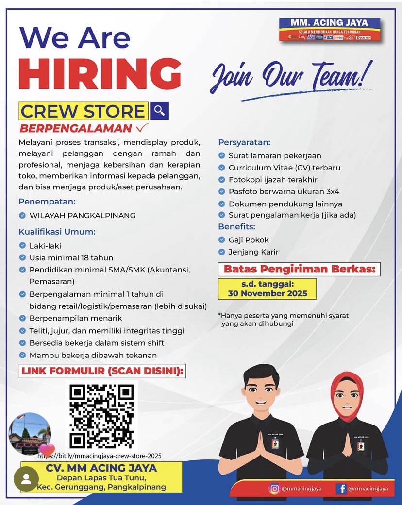 info Loker Crew Fresh & Crew Store-MM ACING JAYA Pangkalpinang