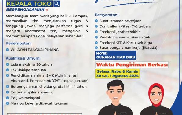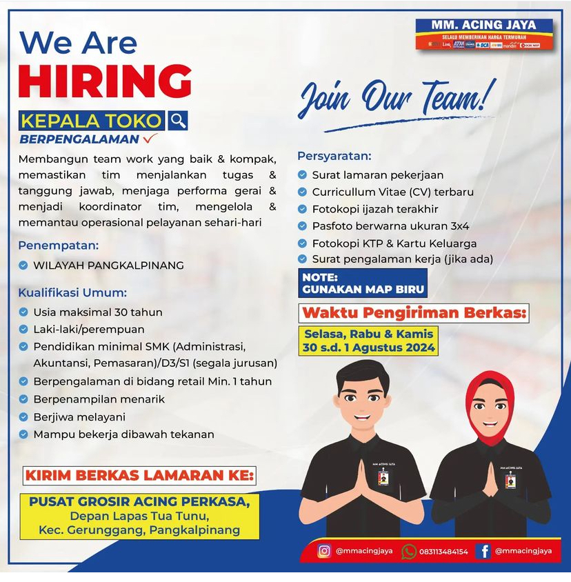 Retail Belanja & Minimarket MM ACING JAYA membuka kesempatan kerja untuk posisi: