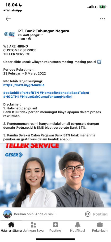 Link Pendaftaran : https://recruitment.btn.co.id/web/id/jobtitle/detail/6