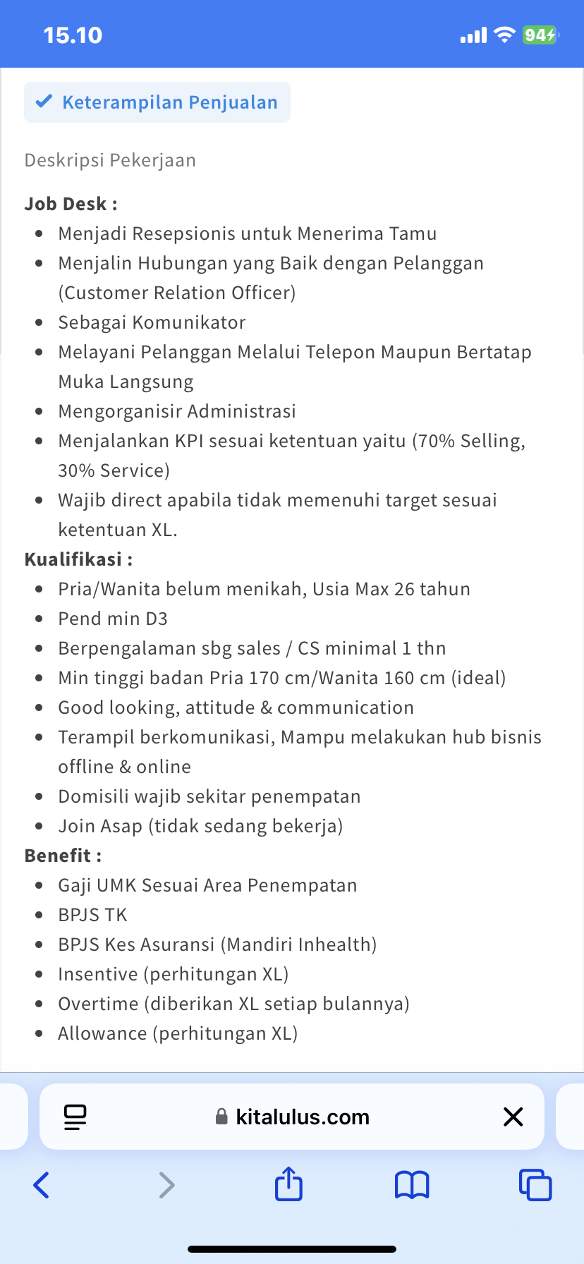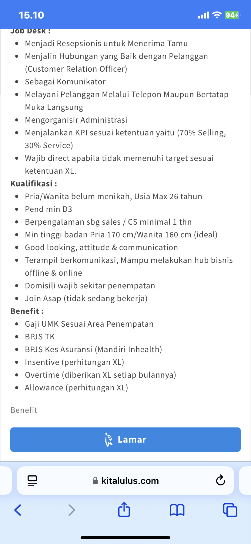 Link Pendaftaraan secara online di : https://www.kitalulus.com/lowongan/detail/customer-service-xl-axiata-bel...