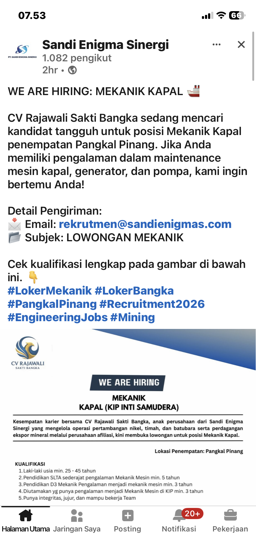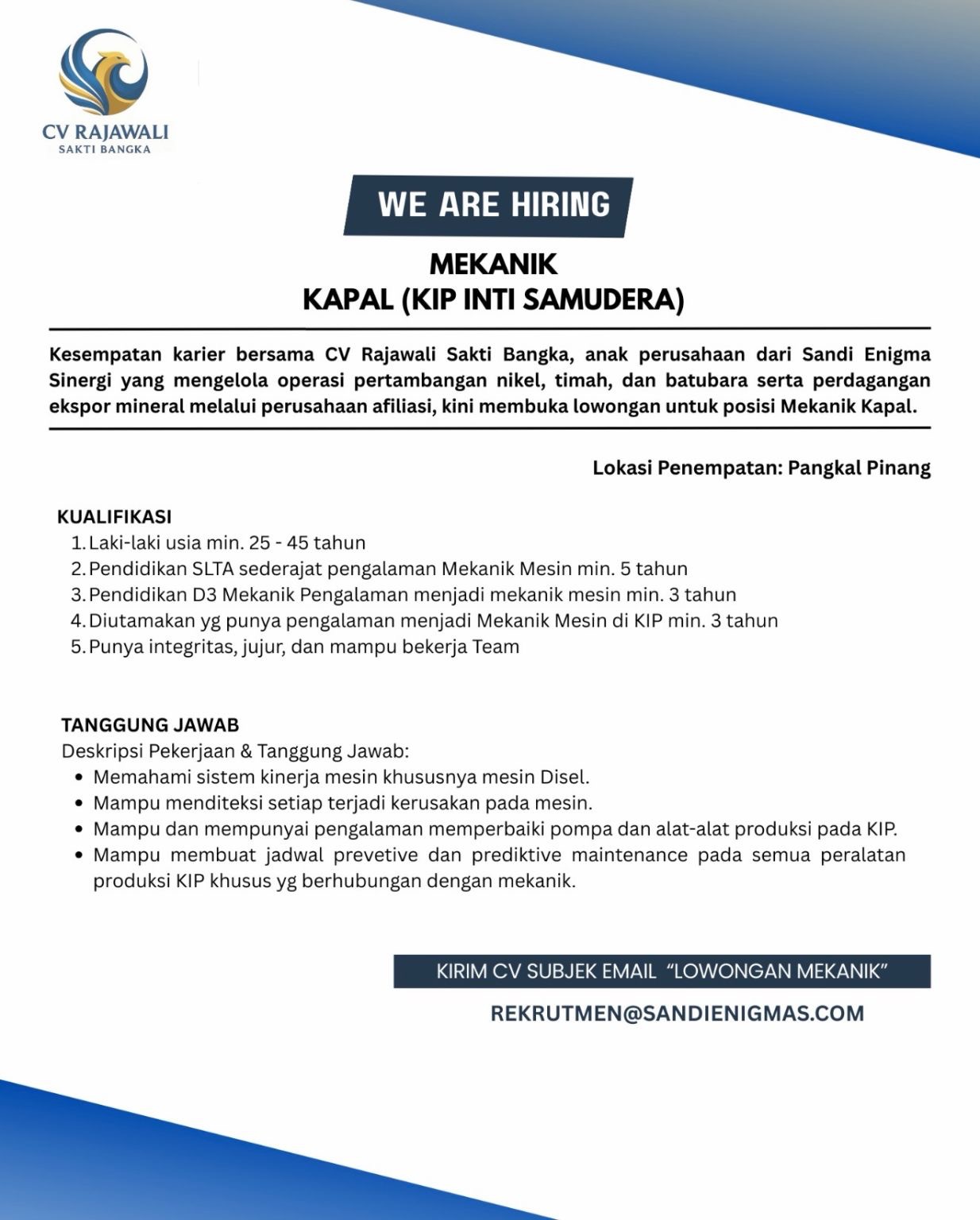 info Loker CV RAJAWALI SAKTI BANGKA-Pangkalpinang