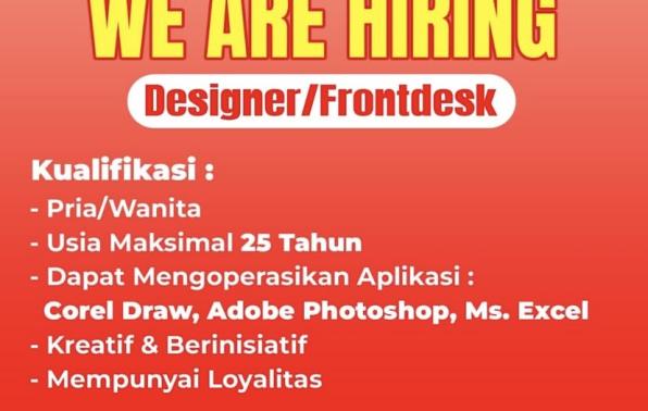 Percetakan Mega Grafika membuka kesempatan kerja unutk posisi Designer/Frontdesk.
