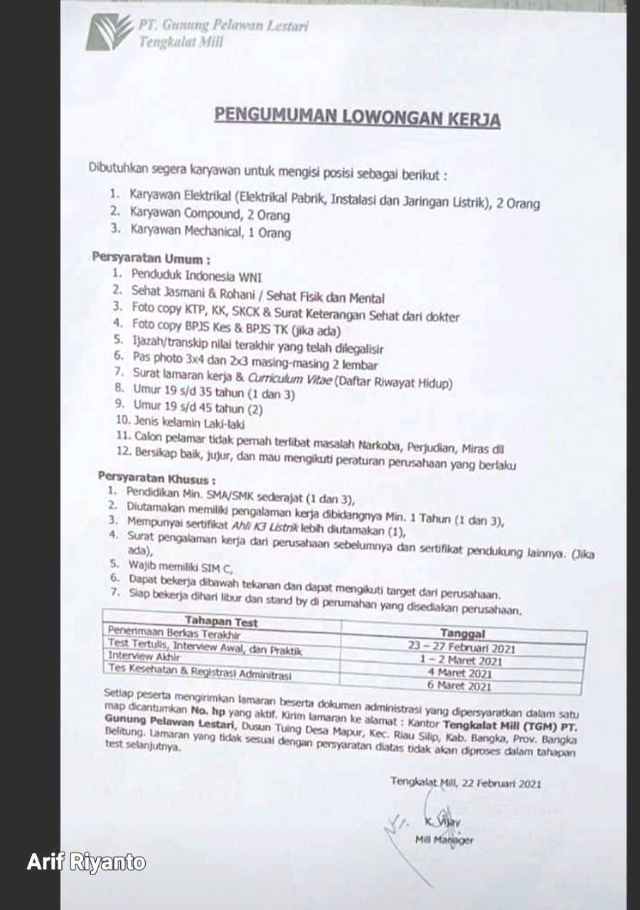 Loker di PT.GUNUNG PELAWAN LESTARI @Riau silip