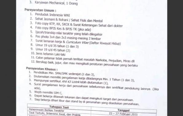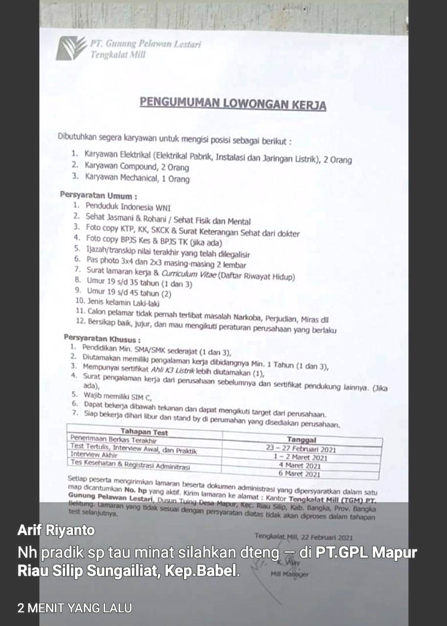 info Loker di PT.GUNUNG PELAWAN LESTARI @Riau silip