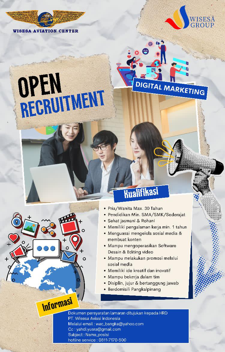 PT Wisesa Aviasi Indonesia membuka kesempatan kerja untuk posisi Digital Marketing.