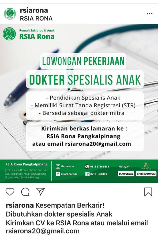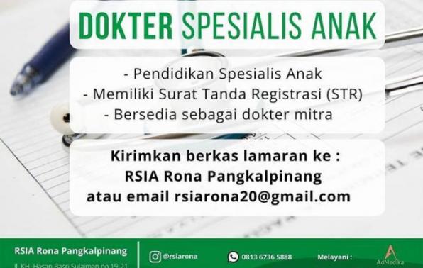 membutuhkan tenaga dokter Spesialis anak @RSIA RONA