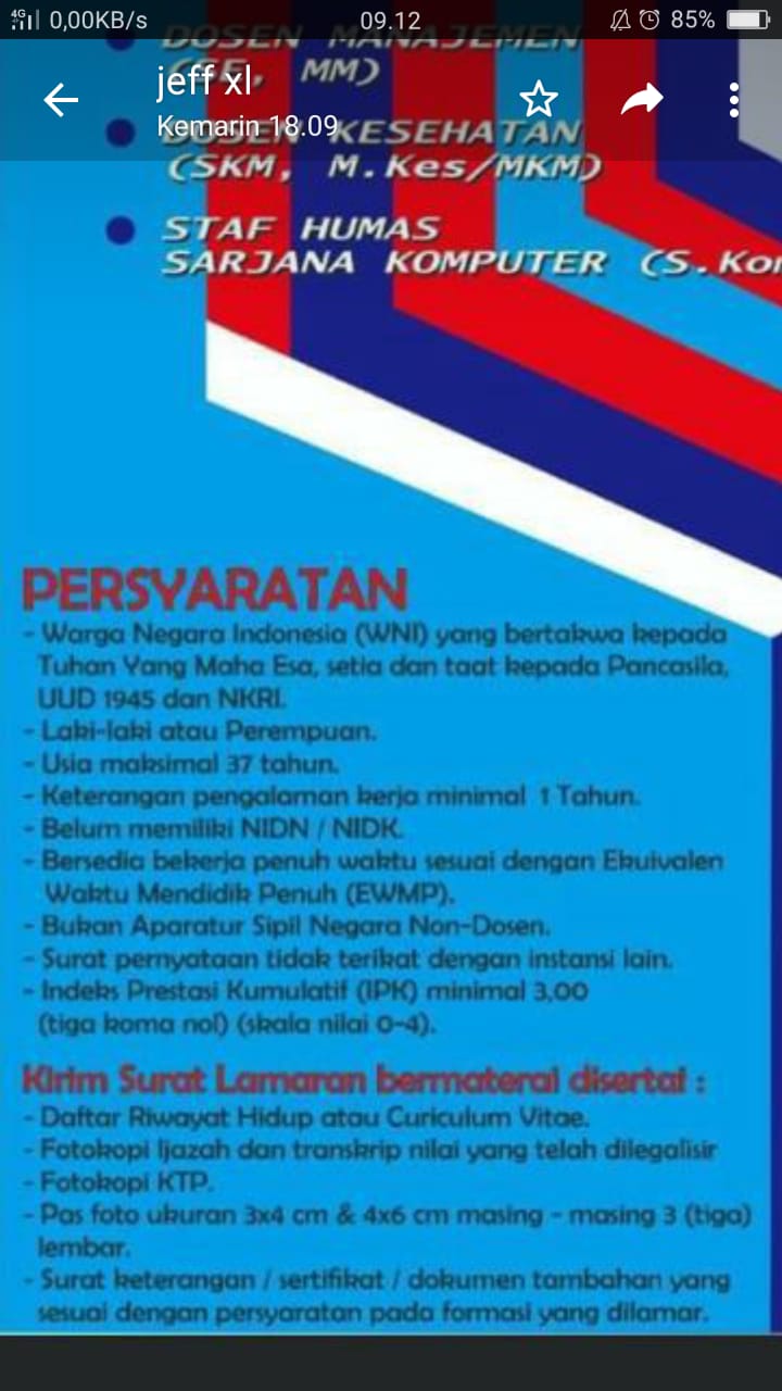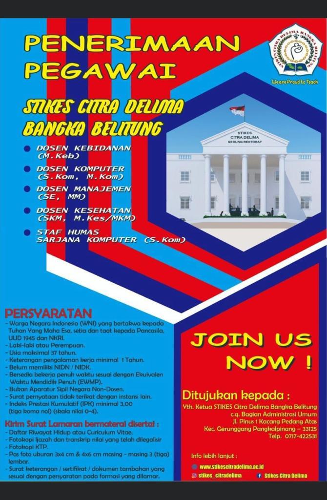 Membuka kesempatan kerja sebagai Dosen & staff pengajar @Stikes Pangkalpinang