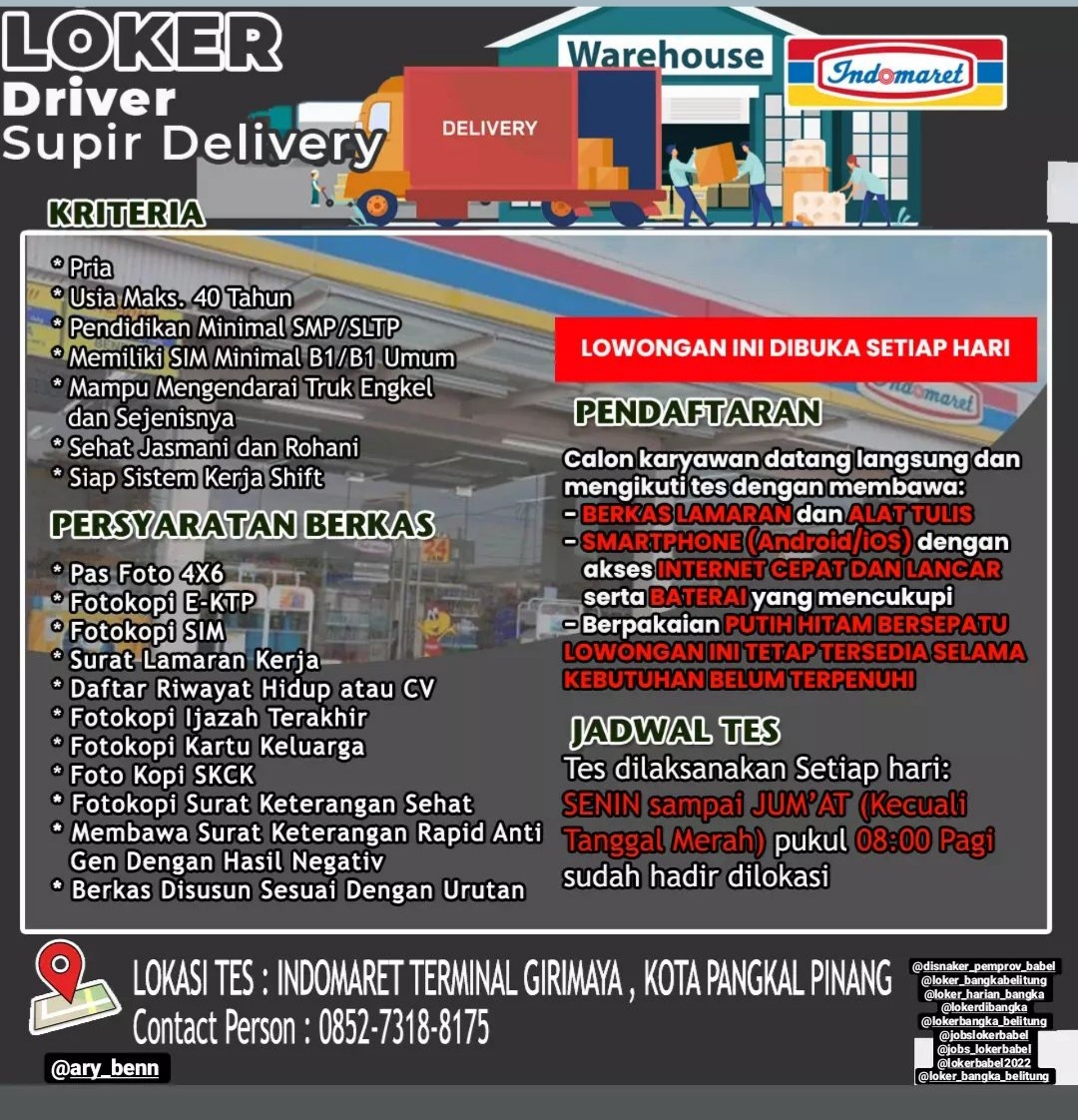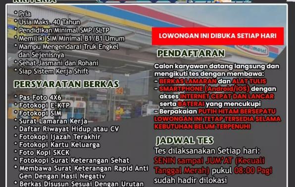 info Loker Driver Delivery @indomaret-bangka Pangkalpinang