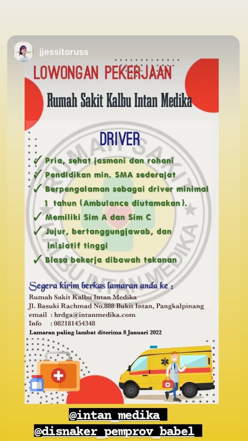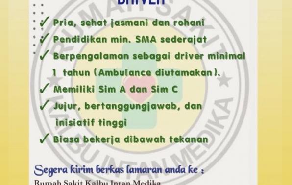 Driver @Rumah Sakit Kalbu Intan Medika-Pangkalpinang