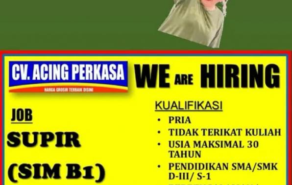 Membutuhkan Driver(SIM B1)-MM ACING @pangkalpinang.