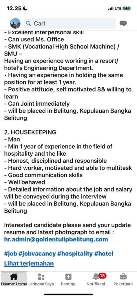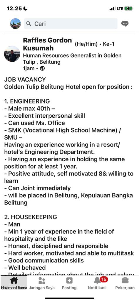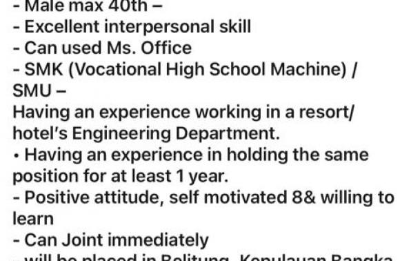 Engineering dan Housekeeping-Hotel Resort-Golden Tulip-Tanjungpandan-Belitung